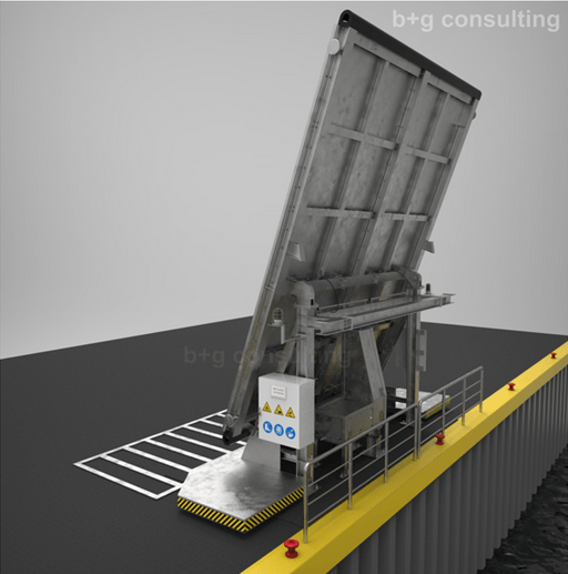 mehr erfahrenSchüttgutabweiser überbrückt den Raum zwischen Schutenladeraum und LKW-Ladewanne
